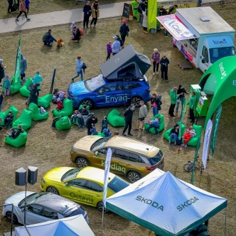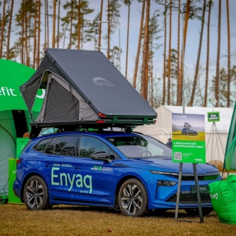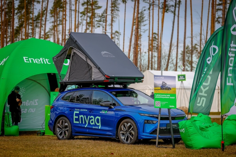 Savukārt Enefit stendā īpašu uzmanību piesaistīja elektroauto Škoda Enyaq, kas aprīkots ar jumta telti — lielisks risinājums aktīvai atpūtai dabā.
