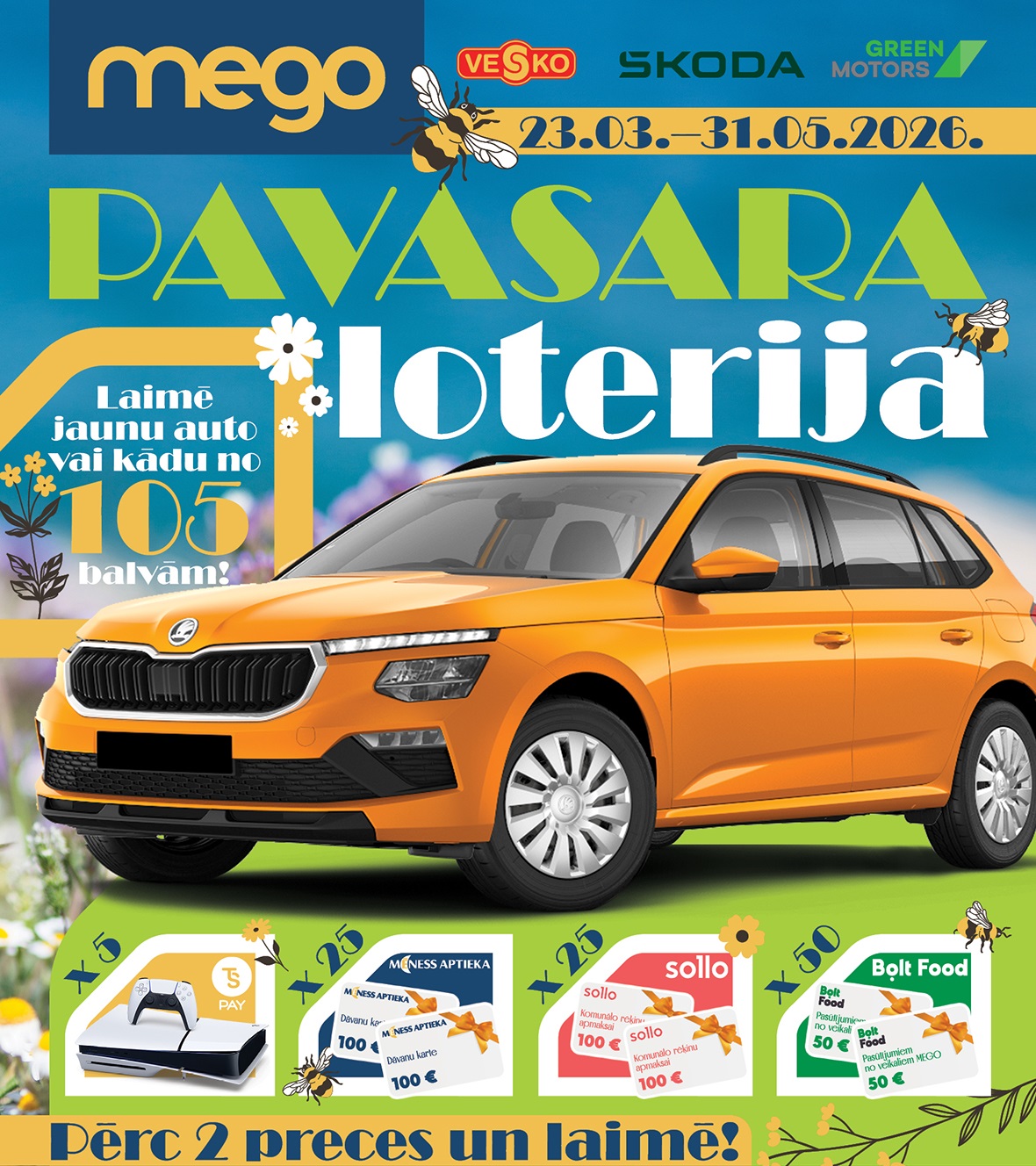 Viss, kas jādara – iepērcies Mego veikalos, reģistrē savu pirkumu un piedalies loterijā. Jo ātrāk iesaistīsies, jo lielākas izredzes sēsties pie jaunā Kamiq stūres.