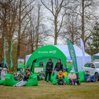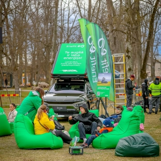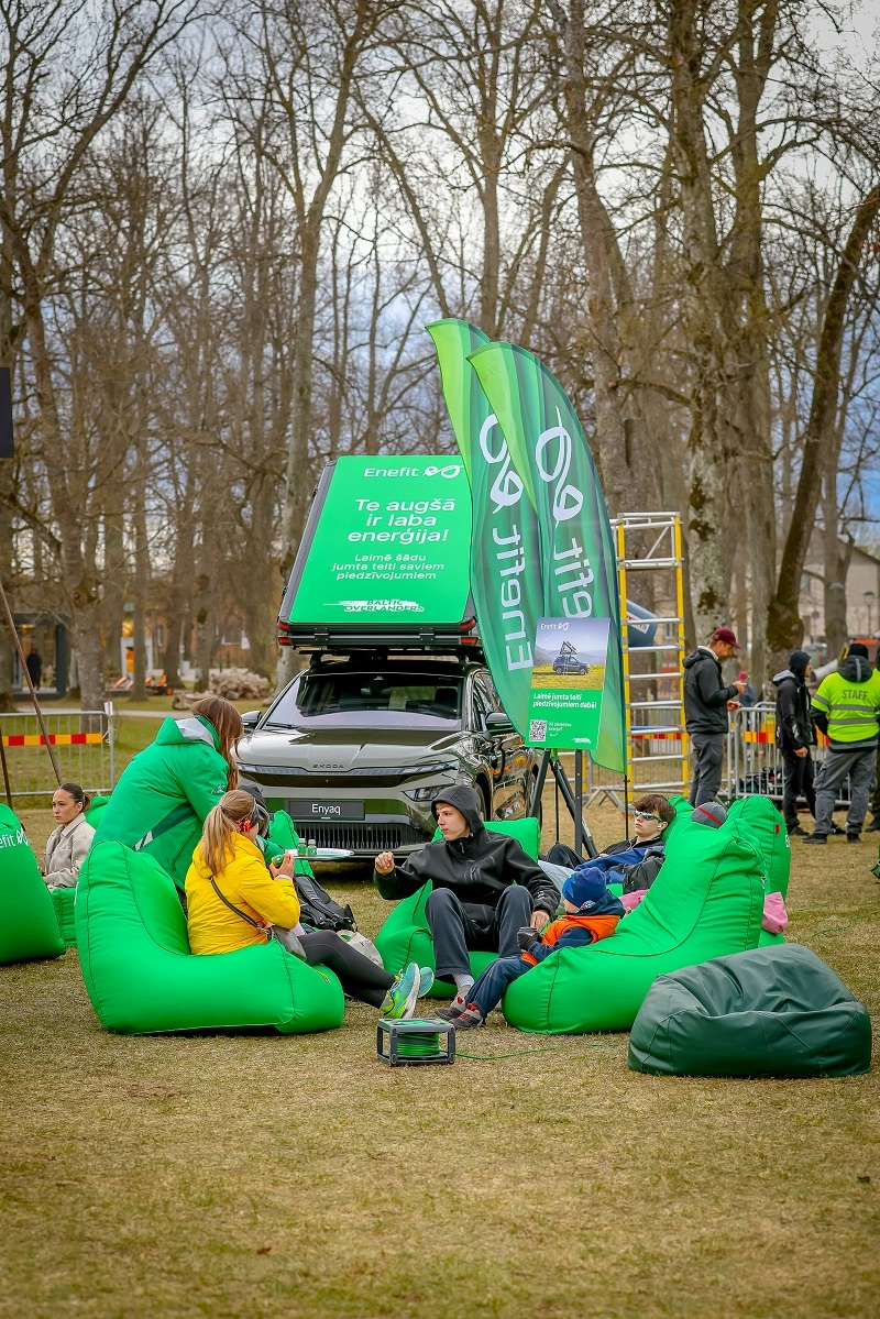 Savukārt Enefit stendā īpašu uzmanību izpelnījās olīvzaļais elektroauto Škoda Enyaq ar jumta telti – lielisks piemērs tam, kā apvienot mobilitāti
