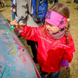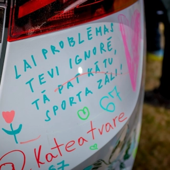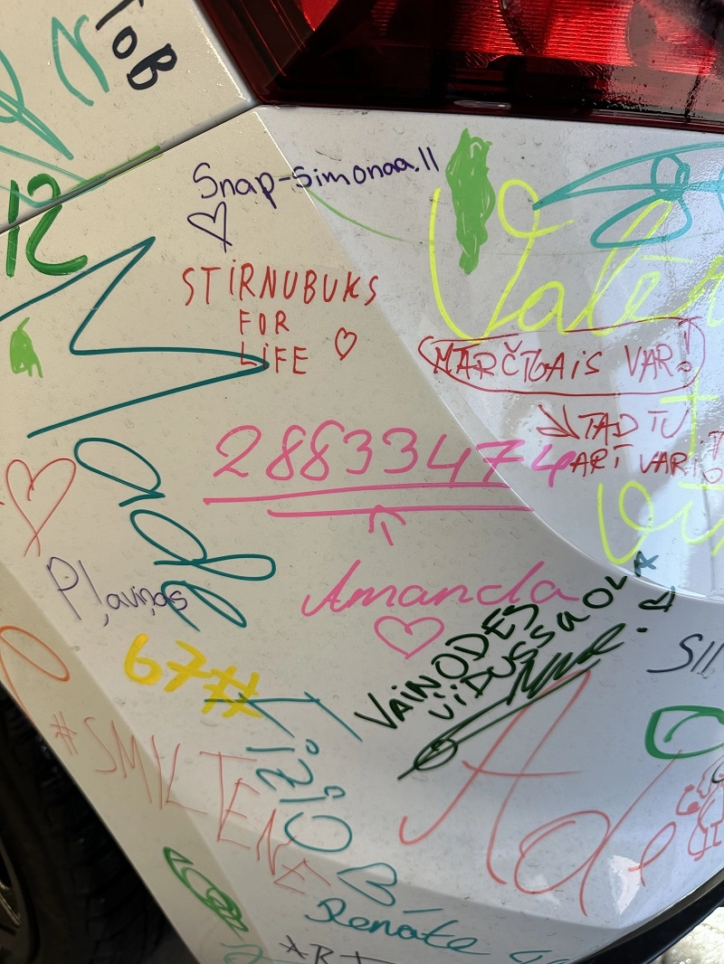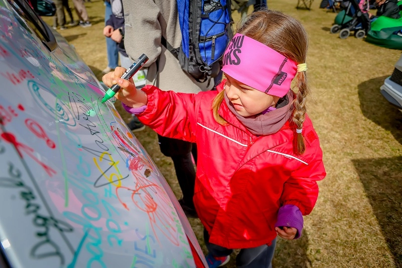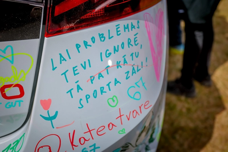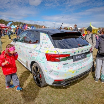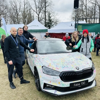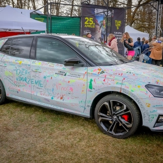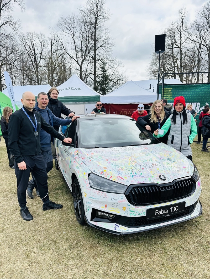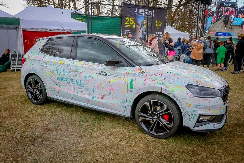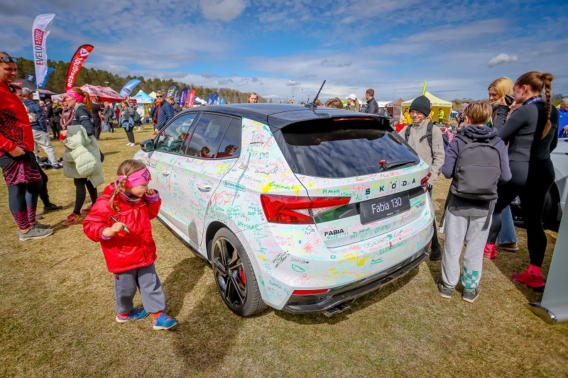 Škoda Fabia 130 jubilejas modelis – uz tā ikviens varēja atstāt savu novēlējumu skrējējiem, papildinot to radošu parakstu (protams, ar īpaši tam paredzētiem flomasteriem!)